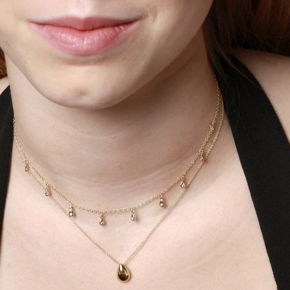 El collar NALA presenta un delicado motivo de gota que combina sutileza y elegancia. Su diseño fino realza cualquier atuendo con un toque sofisticado, perfecto para quienes buscan un accesorio discreto pero con presencia distinguida.